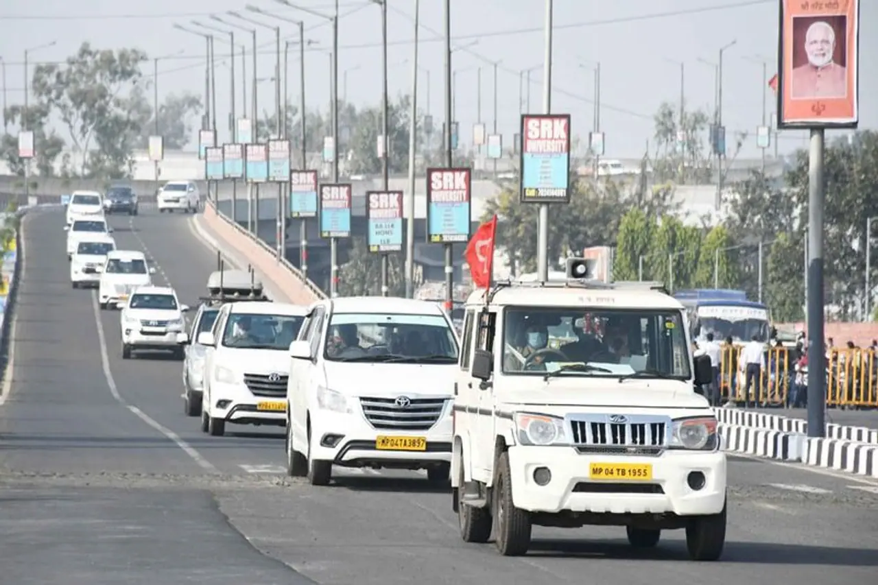 फ्लीट में सबसे पहले पायलट वाहन था। इसके बाद बाकी गाड़ियों का काफिला। एक के बाद एक गाड़ियां गुजरती गईं। आखिरी में एंबुलेंस थी। काफिले में SPG, पुलिस के वरिष्ठ अधिकारी शामिल रहे। इस दौरान महात्मा गांधी चौराहे से अवधपुरी चौराहे तक करीब एक किलोमीटर का ट्रैफिक डायवर्ट कर दिया गया। पुलिस के जवान चप्पे-चप्पे पर तैनात रहे।