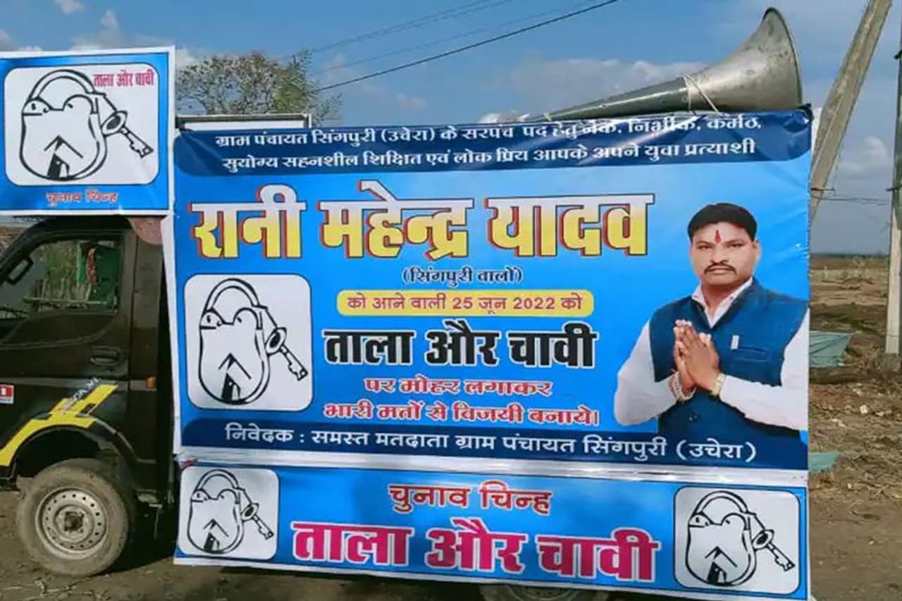 ये रायसेन जिले में ग्राम पंचायत सिंगपुरी की फोटो है। यहां कि सीट महिला के लिए रिजर्व है। लेकिन यहां महिला कैंडिडेट्स के पति ने पोस्टर में केवल अपनी फोटो लगाई है। महिला कैंडिडेट्स का पति केवल अपने नाम पर पत्नी के लिए वोट मांग रहा है।