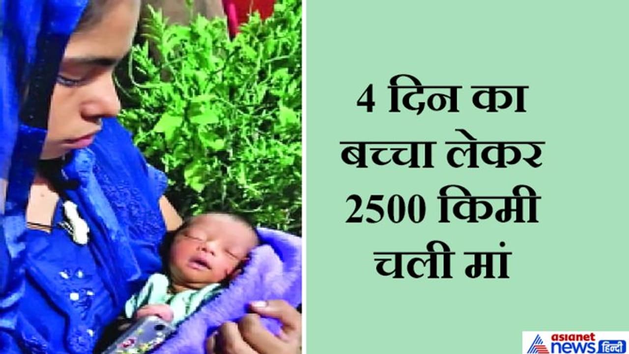 - 4 दिन के बच्चे को लेकर भूखे पेट 2500 किमी के सफर पर निकल पड़ी मजदूर मां,मानवीय संवेदनाओं को झकझोरती तस्वीरें