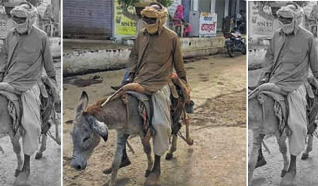 स्वास्थ्य केंद्र जाने के लिए जब 65 साल के बुजुर्ग को नहीं मिला कोई साधन, तो गधे पर बैठकर निकल पड़ा