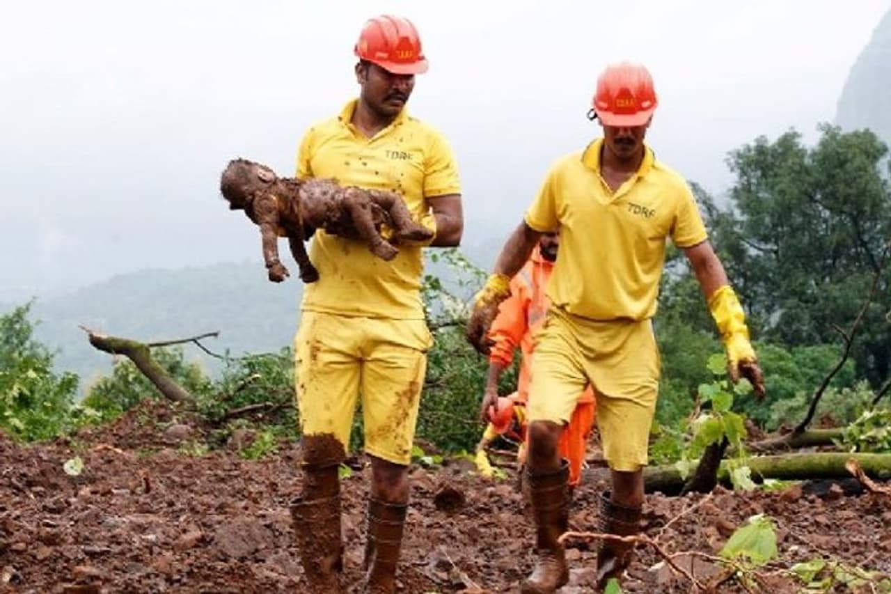 रायगढ़. महाराष्ट्र में पिछले एक सप्ताह से भारी बारिश का कहर जारी है। प्रदश के करीब 21 जिलों में हाहाकार मचा हुआ है। लेकिन सबसे बुरी हालत रायगढ़ जिले के तलीये गांव की है। जहां लैंडस्लाइड में दर्जनों घर जमींदोज हो गए, चार दिन से यहां मलबे के नीचे लाशों के निकालने का सिलसिला थमने का नाम नहीं ले रहा। अब तक रेस्क्यू टीम इस गांव के 53 लोगों के शव निकाल चुकी है। लेकिन शनिवार को जैसे ही एनडीआरएफ टीम के जवानों ने एक सात माह के बच्चे का शव एक चट्टान के नीचे से निकाला तो उनकी आंखों में भी आंसू आ गए। जिसने अभी ठीक से दुनिया देखी भी नहीं थी कि वह कुदरत के कहर का शिकार हो गया। शायद इसिलए लोग कहते हैं कि छोटे शव सबसे ज्यादा भारी होते हैं, क्योंकि उनको उठाते वक्त आंखों से आंसू छलक जाते हैं। पढ़िए कैसे-अपनों को खोने के बाद पांच दिन से बिलख रहे हैं परिजन...