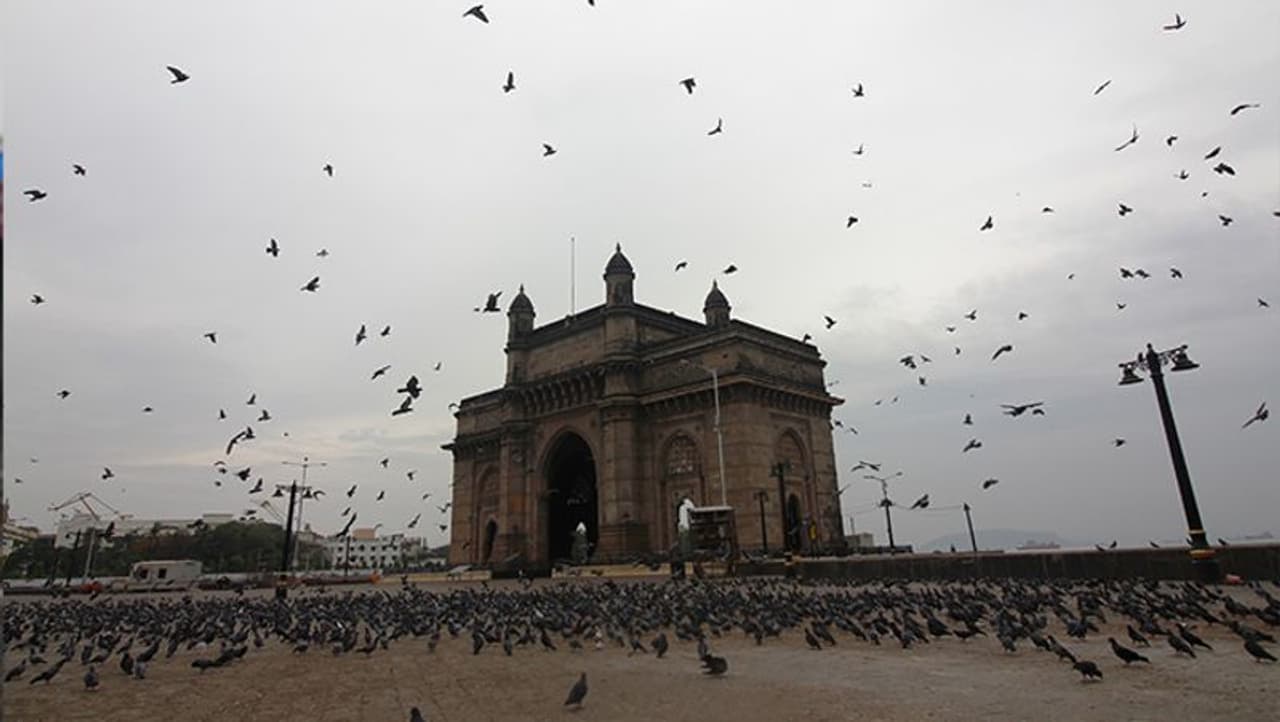मुंबई के गेट वे ऑफ इंडिया का दृश्य। यहां तूफान की आहट जानकर परिंदे घबराकर उड़ने लगे।