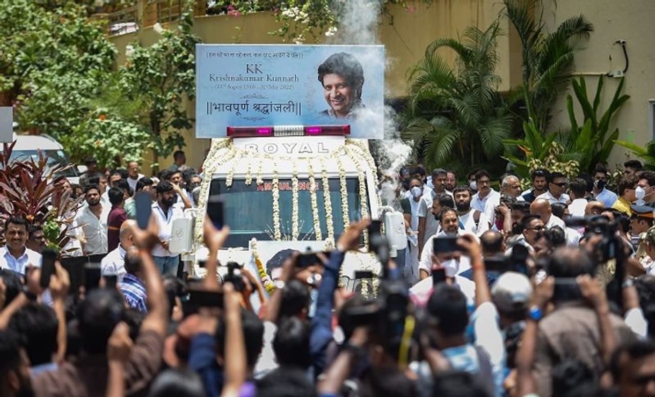 सिंगर केके के पार्थिव शरीर को फूलों से सजी गाड़ी में रखकर मुंबई में उनके आवास से वर्सोवा हिंदू श्मशान घाट ले जाया गया। केके के बेटे नकुल कृषणा ने अंतिम क्रिया कर्म निभाया। केके की बेटी और पत्नी भी उनके अंतिम सफर में साथ थीं।