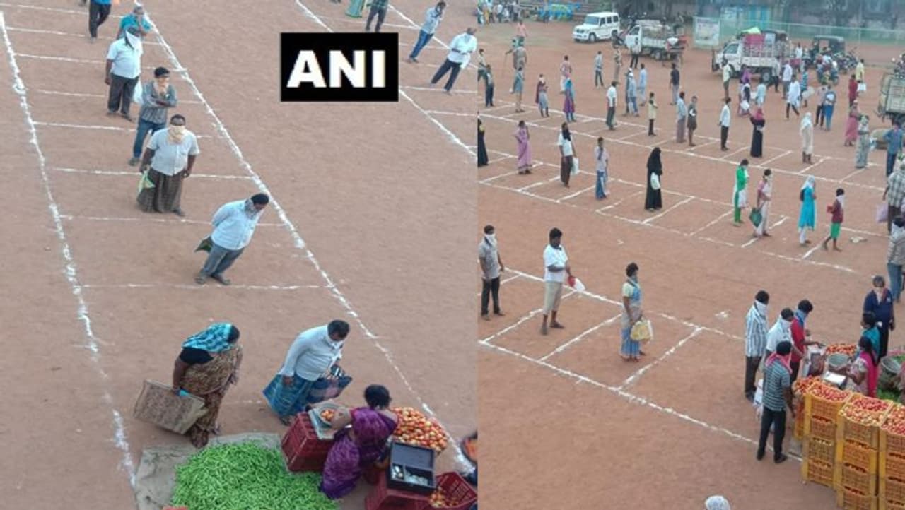 कोरोना के कहर के बीच आंध्र प्रदेश में रायथु बाजार की जगह बदली, ग्राहकों के खड़े होने के लिए बनी लाइनें