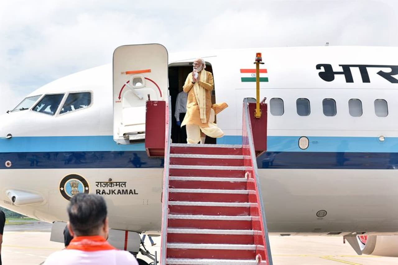 पीएम मोदी विशेष विमान से दिल्ली से 10:35 बजे लखनऊ के अमौसी एयरपोर्ट पहुंचे।