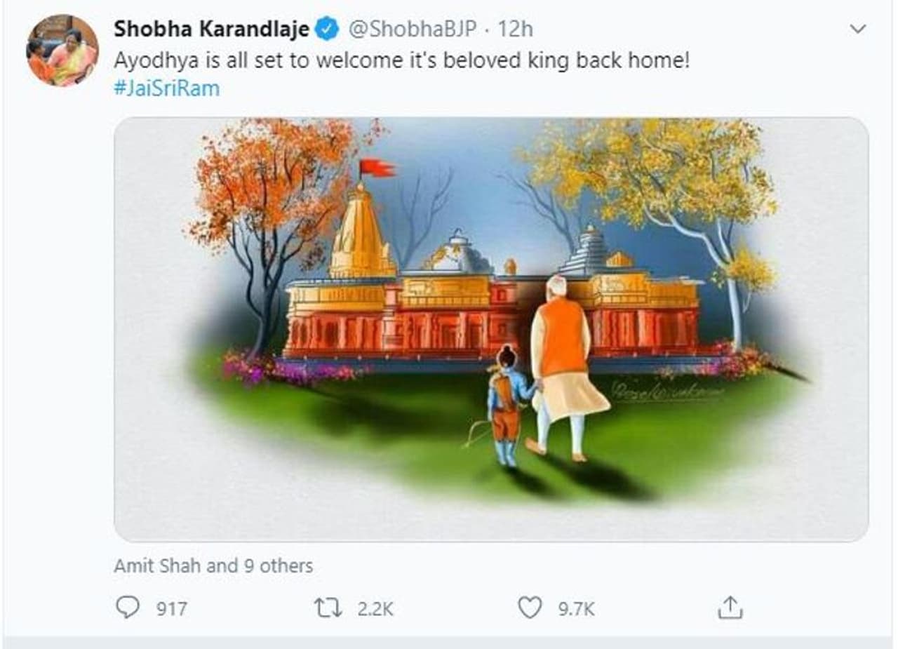 मंदिर निर्माण की खुशी जाहिर करते हुए एक ट्विटर यूजर ने यह तस्वीर शेयर की और लिखा, सरकार आपका स्वागत है।
