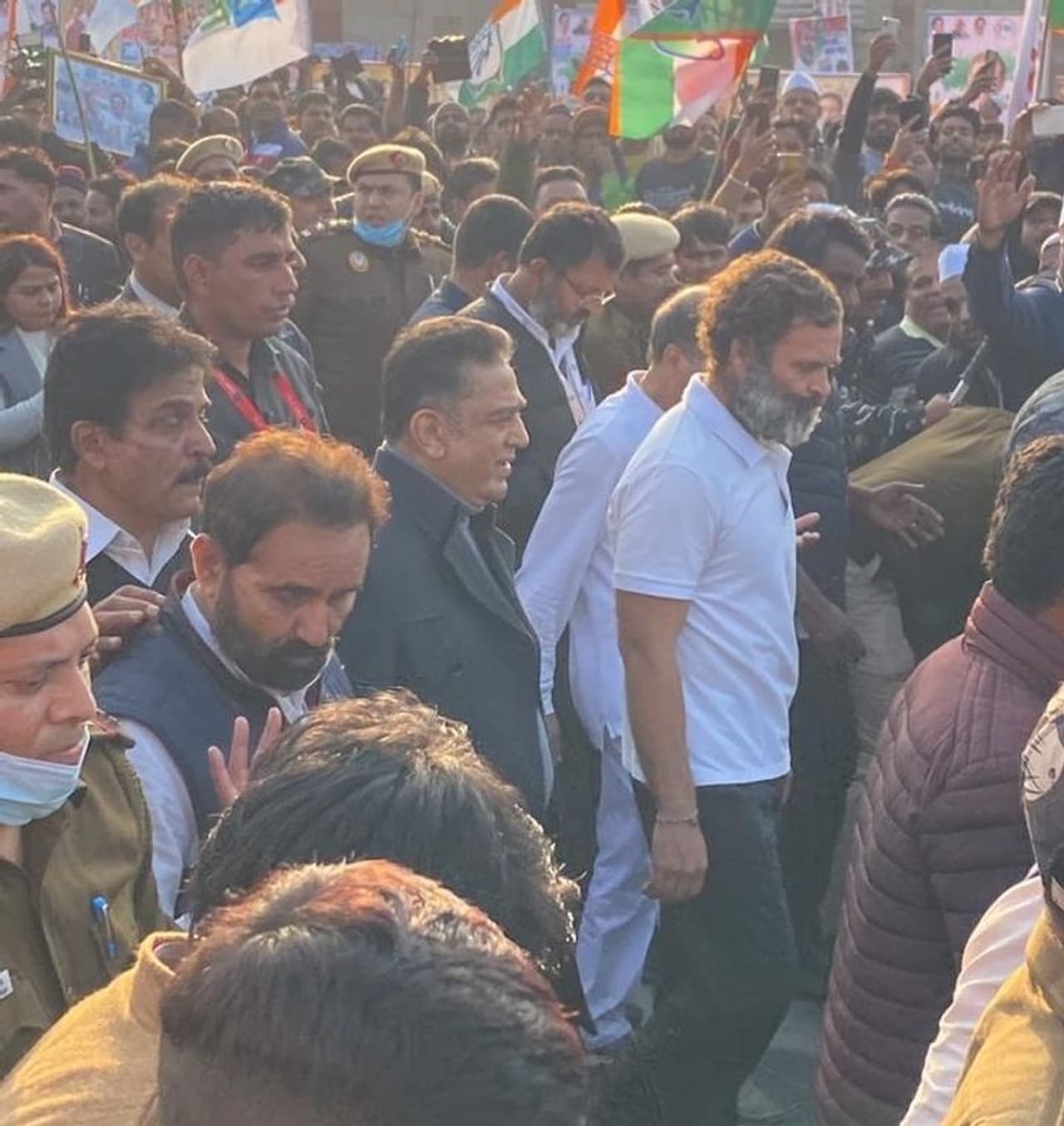 दिल्ली पहुंचने के बाद राहुल गांधी के साथ मशहूर फिल्म अभिनेता कमल हासन ने भी मार्च किया। दक्षिण के फिल्मों के सुपर स्टार कमल हासन ने भी राजनीति में कुछ साल पहले कदम रखी थी। उन्होंने एक नई पार्टी भी बनाई है।