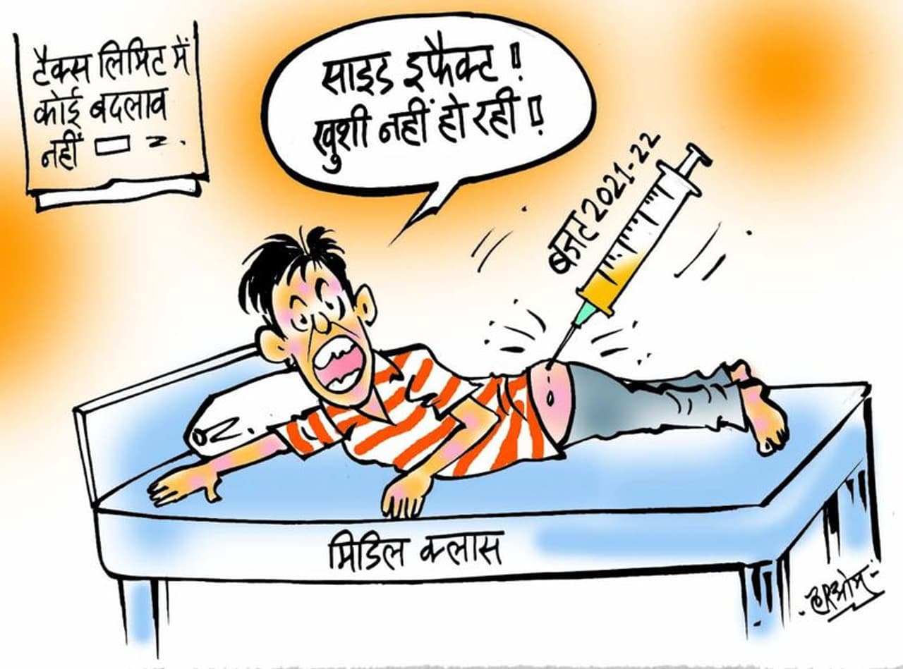 वित्त मंत्री निर्मला सीतारमण ने साल 2021-22 का बजट पेश कर दिया है। सबसे ज्यादा ध्यान स्वास्थ्य पर  दिया गया है। हर बार की तरह इस बार भी टैक्स स्लैब को लेकर आम आदमी को उम्मीद थी, लेकिन इस बार टैक्स स्लैब में कोई बदलाव नहीं किया गया। 75 साल से ज्यादा उम्र के पेंशनधारी बुजुर्गों को टैक्स में छूट दी गई है। बजट पेश होने के बाद लोगों ने मिलिजुली प्रतिक्रिया दी। विपक्ष ने इसे देश को बेचने वाला बजट बताया। ऐसे में कार्टूनिस्ट हरिओम तिवारी ने कुछ तस्वीरों के जरिए बजट को दिखाया।