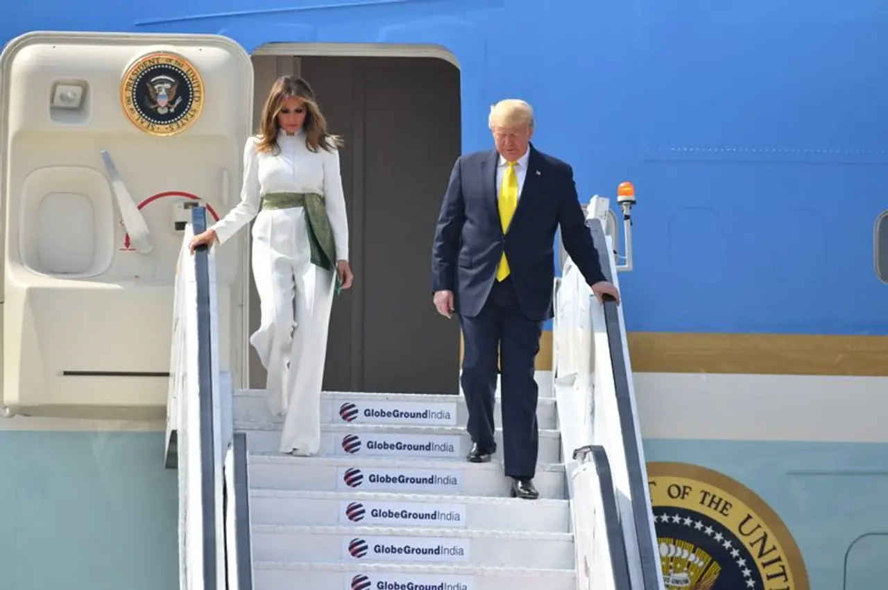 यूएस फर्स्ट लेडी मेलानिया ट्रम्प 24 फरवरी को अमेरिकी राष्ट्रपति डोनाल्ड ट्रम्प के साथ देश की अपनी पहली यात्रा के लिए भारत पहुंची। इस यात्रा में उन्होंने हेरवे पियरे फैशन डिजाइनर एक शानदार सफेद जंपसूट पहना था। इस ड्रेस में मेलानिया ने हरे रंग का भारतीय सिल्क कपड़े का एक बेल्ट लगाया।
