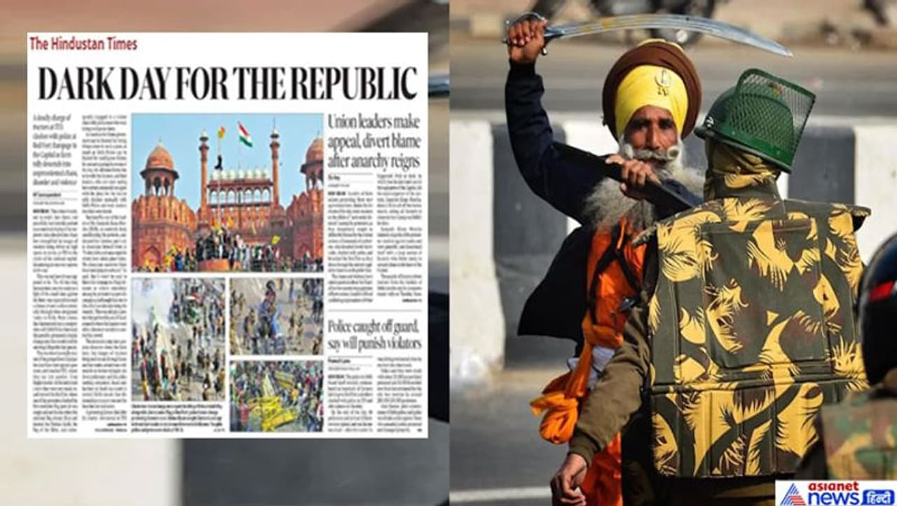 हिंदुस्तान टाइम्स के पहले पेज "डार्क डे फॉर द रिपब्लिक" हैडलाइन के साथ इस खबर को कवर किया गया। लाल किले, आईटीओ और अन्य हिस्सों में प्रदर्शनकारियों के असंतोष की तस्वीरों के साथ थी हिंसा भड़कने की बात कही गई है। फ्रंट पेज की कहानी में लाल किले पर प्रदर्शनकारियों और पुलिस के बीच झड़पों के अलावा आईटीओ में ट्रैक्टरों रैली के बर्बर रूप लेने के बारे में स्टोरी दी गई हैं। फ्रंट पेज पर एक और शीर्षक है: "अराजकता फैलने के बाद किसान संगठन के नेताओं ने दोष प्रदर्शकारियों पर मढ़ दिए "एक और कहानी में पुलिस के साथ मारपीट करने वालों वालों को दंडित करने की बात कही गई है।