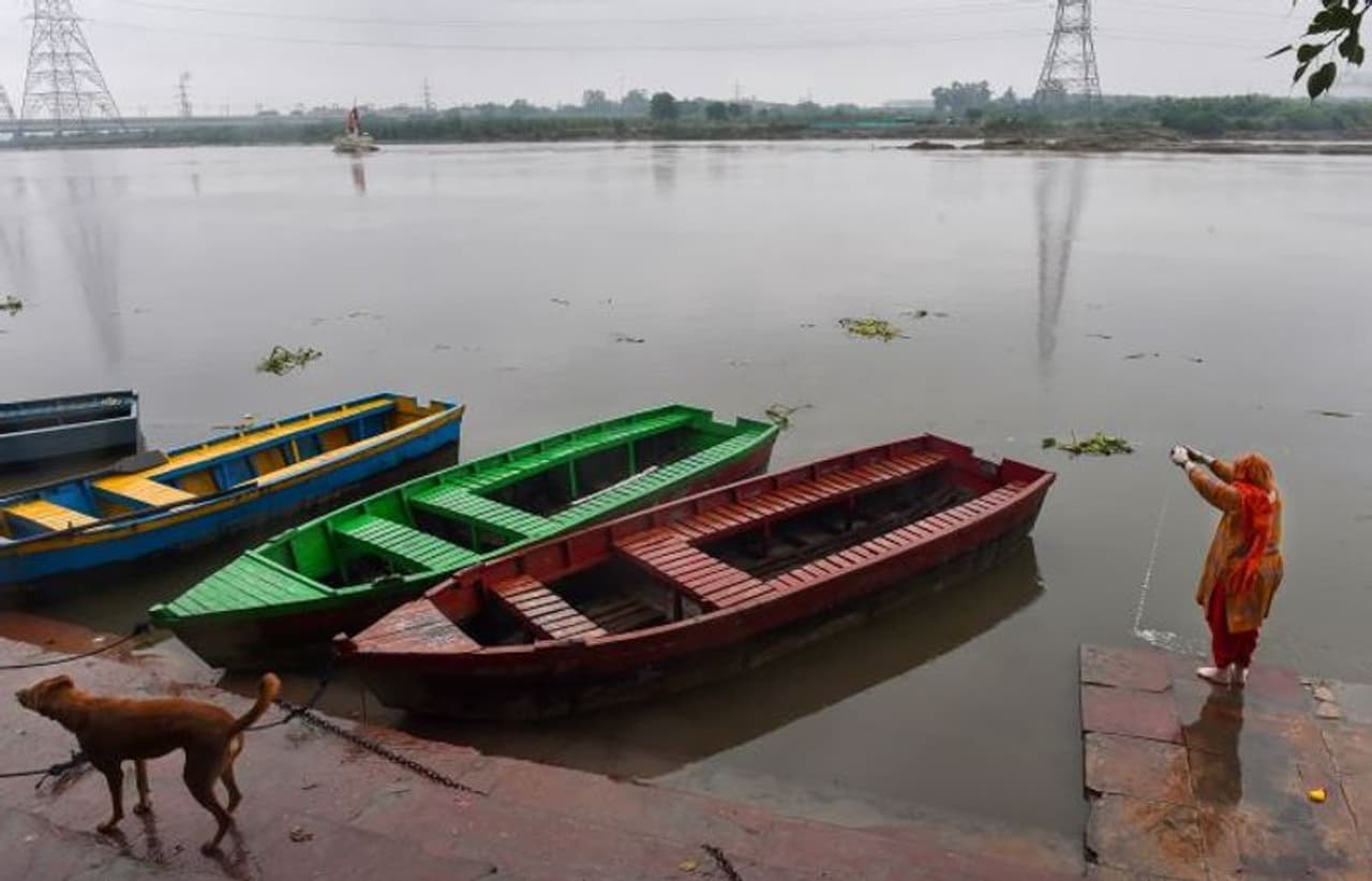 दिल्ली में भारी बारिश की वजह से यमुना में बाढ़ आ गई है। इस बीच फोटो में देखा जा सकता है कि बारिश के बीच एक महिला सूर्य देवता को जल दे रही है।