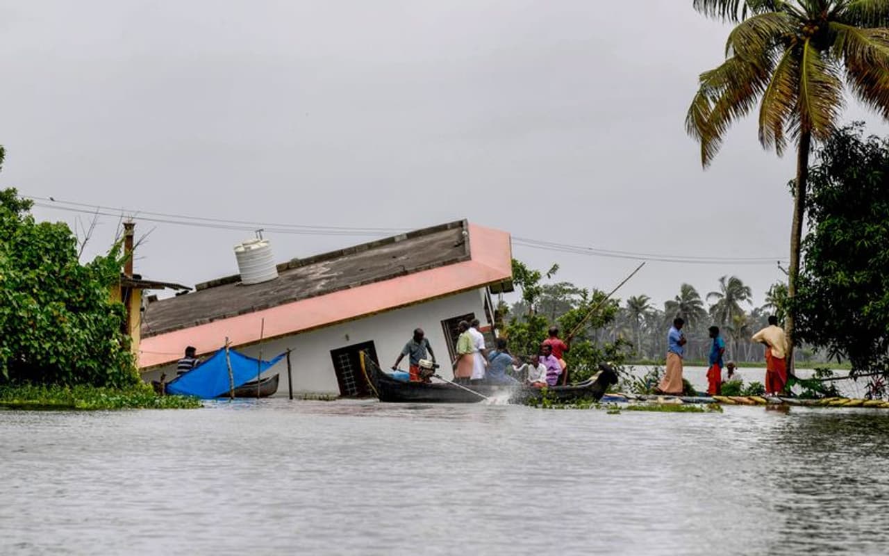 यह तस्वीर केरल के अलाप्पुझा जिले की है। यहां मानसून की बारिश के कारण घर डूब गए हैं।