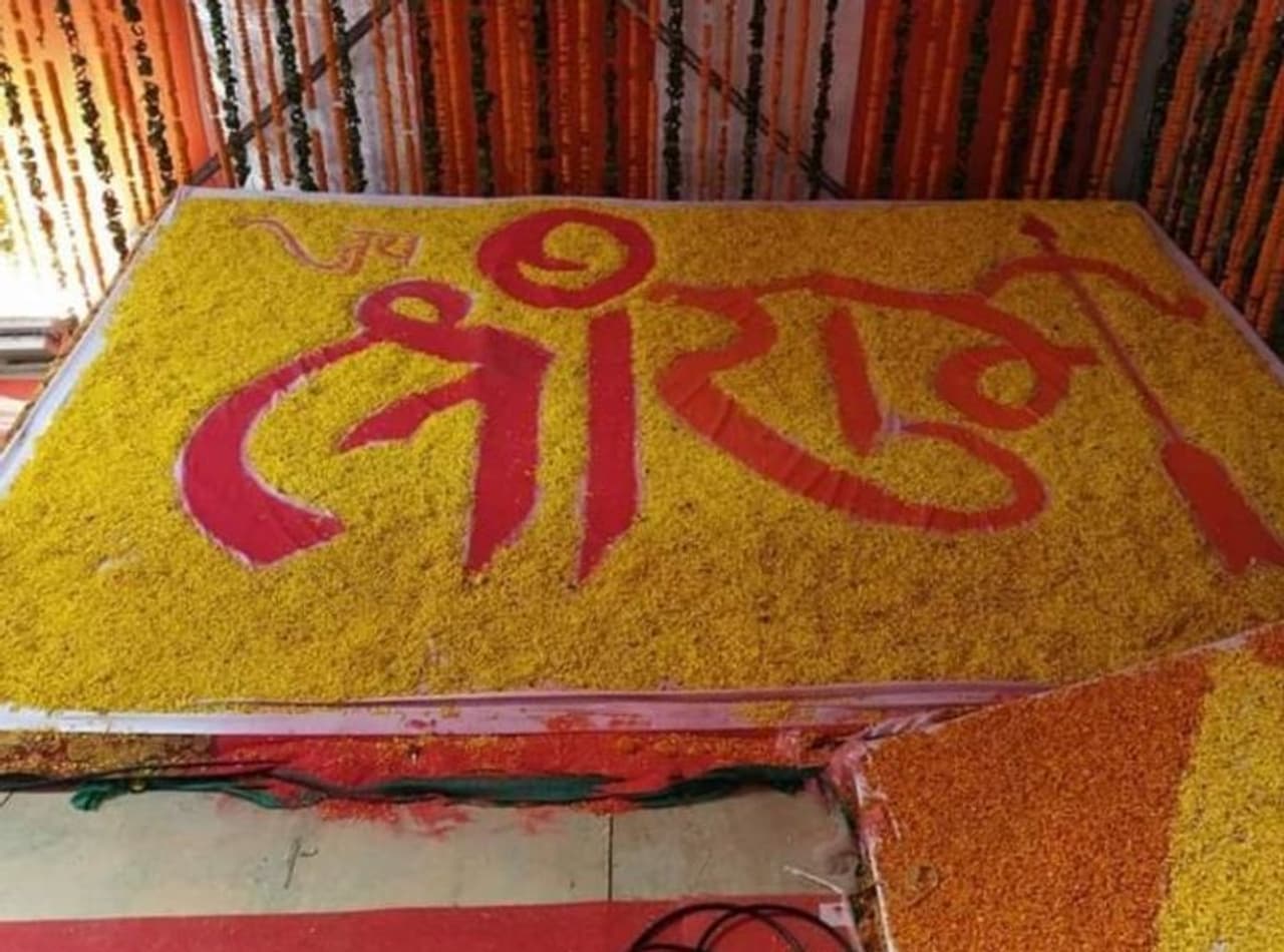भगवा रंग के पर्दों से पूरा क्षेत्र कवर