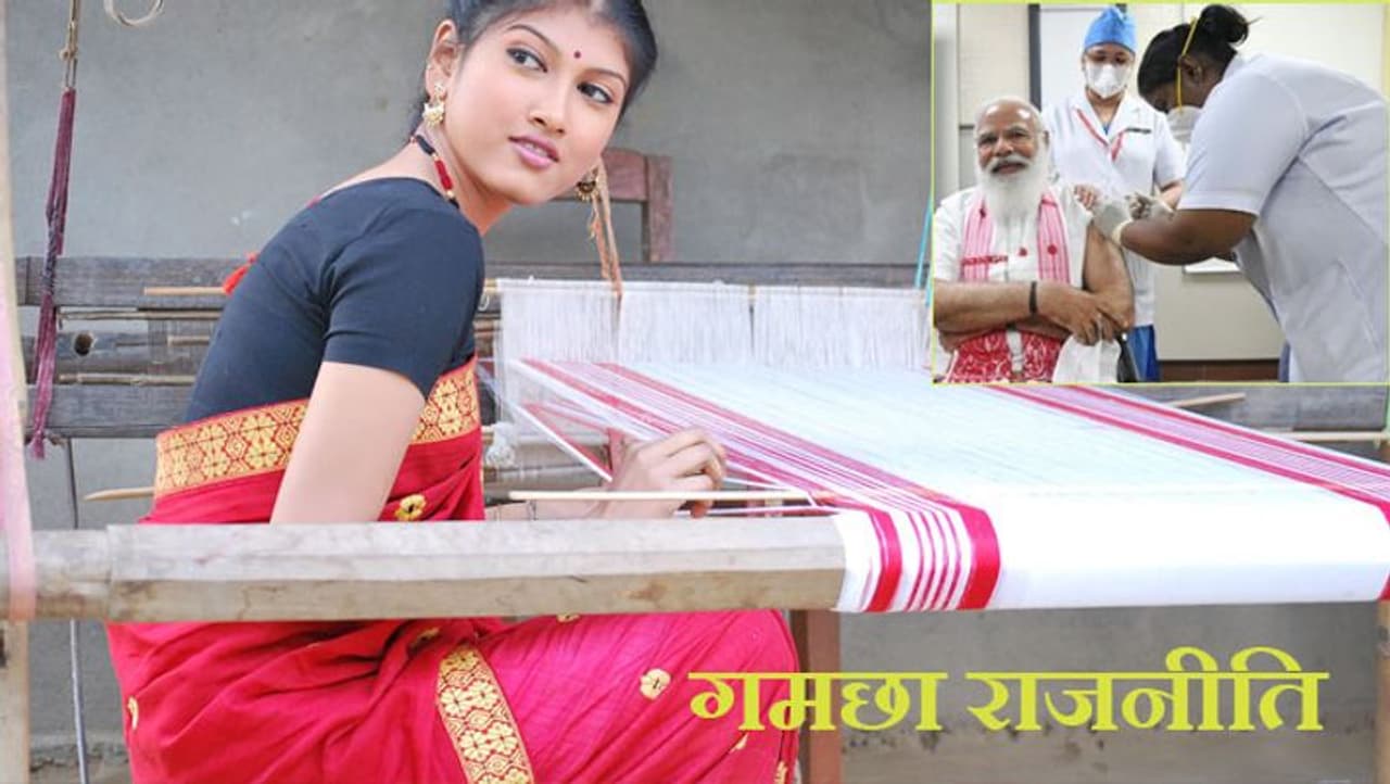 असम में होने जा रहे विधानसभा चुनाव के बीच बैनर-पोस्टर छोड़िए...असमिया संस्कृति का प्रतीक गमछा(गमोसा) मीडिया की सुर्खियों में है। पार्टी कोई भी हो, उसके नेताओं के गले में असम पहुंचने पर गमोसा लटका जरूर देखा जाता है। प्रधानमंत्री मोदी, प्रियंका-राहुल गांधी यहां तक कि KBC में अमिताभ बच्चन भी गमोसा पहने दिखे। आपको बता दें कि असम में परंपरागत रूप से प्रचलित गमोसा सूती कपड़े से बनता है। कोरोनकाल में इसका उपयोग मॉस्क के तौर पर खूब जा रहा है। गमछा असम के लोगों की सांस्कृतिक और क्षेत्रीय पहचान का एक अभिन्न वस्त्र है। परंपरागत रूप से गमछे में तीन तरफ लाल रंग के किनारे होते हैं। जबकि चौथा किनारा खुला होता है। खुले हुए मुंह पर मिले-जुले रंगों से स्थानीय और प्राकृतिक चित्रकारी होती है। इन कलाकृतियों को बनाने में मुख्यत: लाल रंग का इस्तेमाल होता है। इस समय यह गमछा राजनीति के रंग में रंगा हुआ है। आइए पढ़ते हैं गमछे की सांस्कृतिक-सामाजिक और राजनीति पहचान...