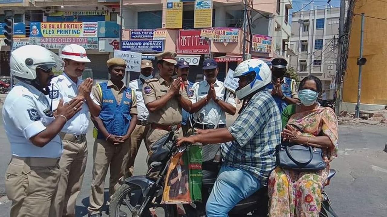 जनता कर्फ्यू: पुलिस ने हाथ जोड़ लोगों से घर में रहने की अपील की, जो नहीं माने उन्हें थमा दिए प्ले कार्ड