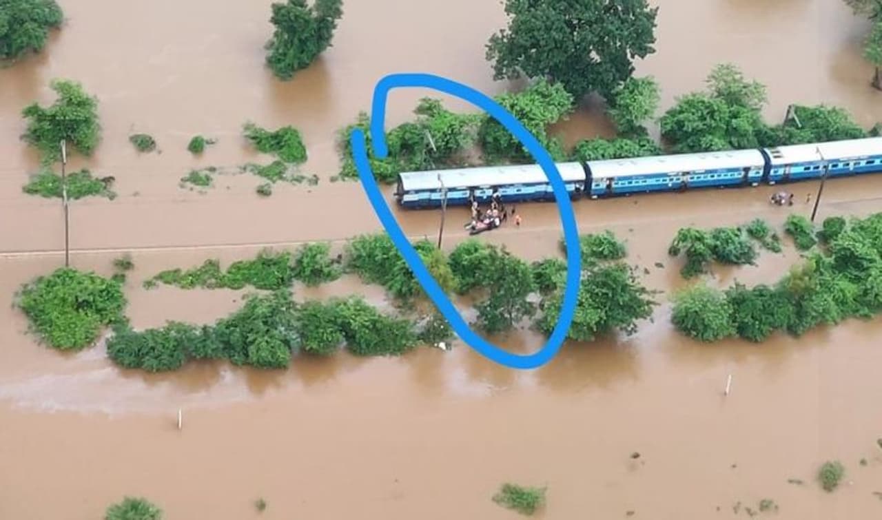 बाढ़ में फंसी महालक्ष्मी एक्सप्रेस का एरियल व्यू।