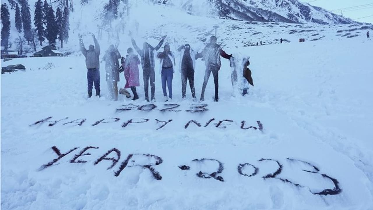 धरती का स्वर्ग कहे जाने वाला कश्मीर इन दिनों बर्फ की चादर से लिपटा हुआ है। गुलमर्ग के स्की रिसॉर्ट पर्यटकों से भरे हुए हैं। यहां लोगों ने बर्फ पर 'हैप्पी न्यू ईयर 2023' लिखकर नए साल का स्वागत किया।