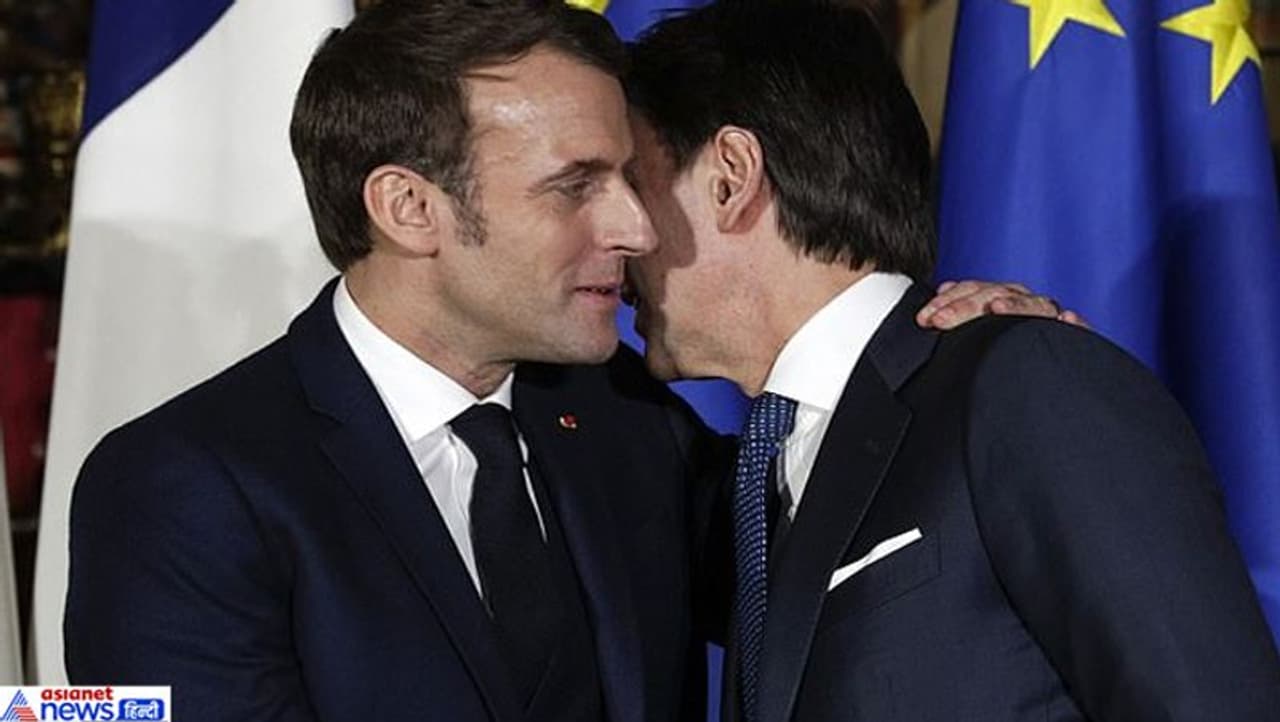 फ्रांस के हेल्थ मिनिस्टर ने देशवासियों से अपील की है कि कोरोना को देखते हुए एक दूसरे को किस करने में कोताही बरतें। हेल्थ मिनिस्टर ओलिवियर वेरन ने फ्रांस के लोगों से कहा कि उन्हें एक दूसरे के स्वागत के वक्त की जाने वाली फ्रेंच किस (गालों से गाल लगाकर) नहीं करनी चाहिए। (फोटो में फ्रांस के राष्ट्रपति इमैनुएल मैक्रों, इटली के प्रधानमंत्री को फ्रेंच किस करते हुए। )