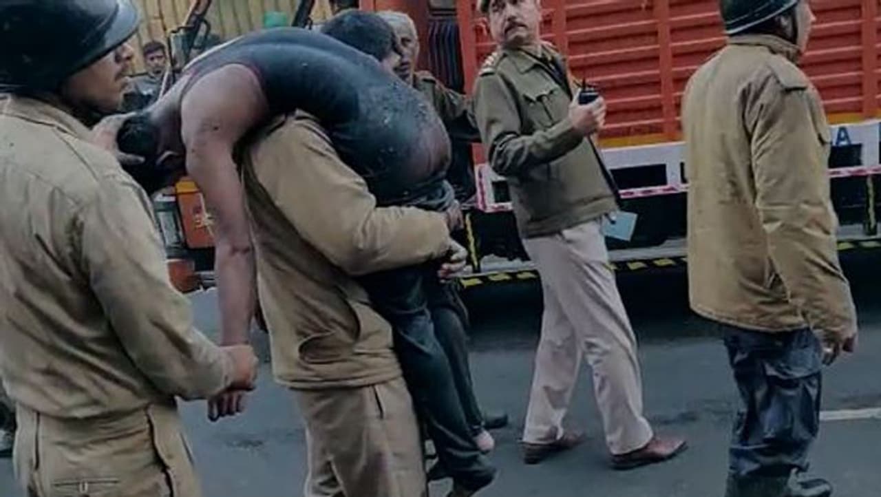 घायल लोगों को पहले आग की चपेट से बचाया गया। फिर संकरी गलियों से उन्हें निकलकर लाया गया। जहां से पुलिसकर्मी उन्हें अपने कंधे पर लादकर ले जाते नजर आए।