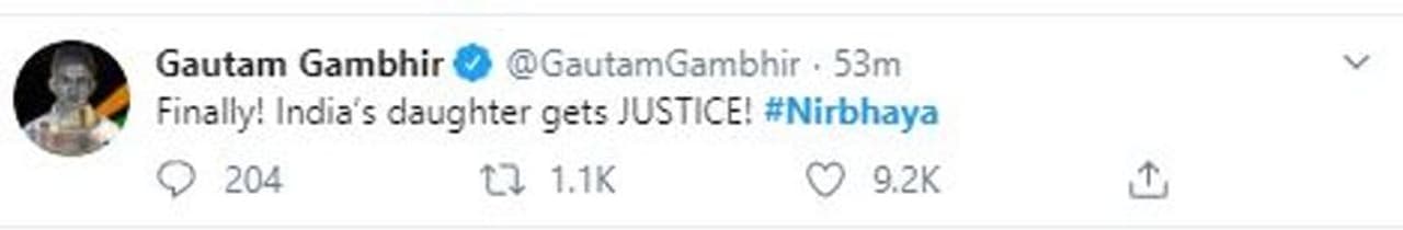 दिल्ली से बीजेपी सांसद और पूर्व क्रिकेटर गौतम गंभीर ने प्रतिक्रिया देते हुए लिखा है कि अंततः भारत की बेटी को न्याय मिला।