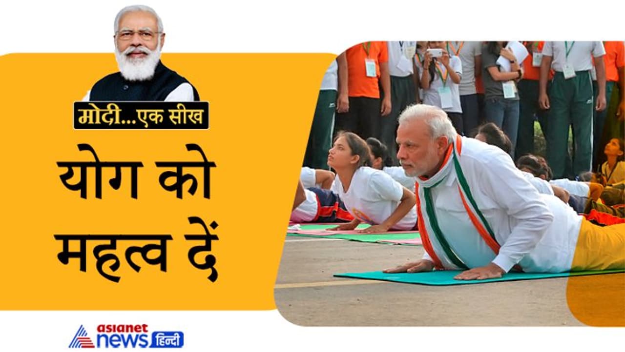 पीएम मोदी की जिंदगी में योग का बहुत महत्व है। उनके दिन की शुरुआत योग से ही होती है। वे हर दिन सुबह वॉकिंग, योग और मेडिटेशन जरूर करते हैं। सूर्य नमस्कार, प्राणायाम और फिर दूसरे योगासन करते हैं। पीएम मोदी का मानना है कि योग से शारीरिक और मानसिक स्वास्थ्य लाभ मिलता है। शरीर की फ्लेक्सिबिलिटी बढ़ती है। मांसपेशियों में ताकत आती है। तनाव-अनिद्रा दूर होती है। मोदी का कहना है कि योग निगेटिव से पॉजिटिव की तरफ जाने का रास्ता है। कोई नेगेटिव एनर्जी हमें तोड़ नहीं सकती है। योग स्ट्रेस से स्ट्रेंथ की ओर ले जाता है।