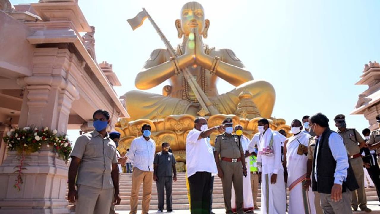 हर इंसान की भावना के साथ लोगों के उत्थान के लिए अथक प्रयास किया। स्टैच्यू ऑफ इक्वैलिटी का उद्घाटन, श्री रामानुजाचार्य की वर्तमान में चल रही 1000 वीं जयंती समारोह यानी 12 दिवसीय रामानुज सहस्रब्दी समारोहम का एक भाग है।