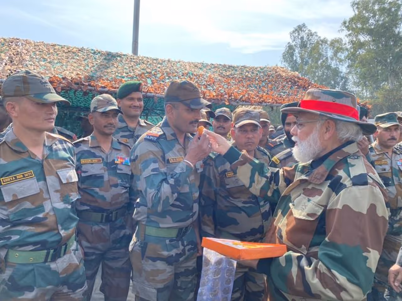 • PM Modi Diwali with Soldiers हाथों से खिलाई मिठाई, 10 फोटोज देखिए प्रधानमंत्री का साथ पाकर जोश से भर उठे जवान