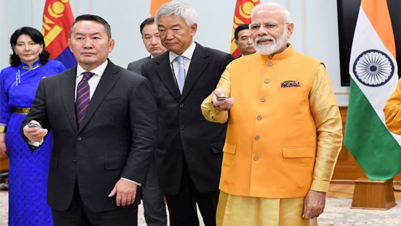 नई दिल्ली. प्रधानमंत्री नरेंद्र मोदी और मंगोलिया के राष्ट्रपति खाल्टमा बटुल्गा ने बौद्ध मंत्रोच्चार के बीच शुक्रवार को रिमोट के जरिये संयुक्त रूप से मंगोलिया के गंडन मठ में भगवान बुद्ध की प्रतिमा का अनावरण किया। मंगोलिया के राष्ट्रपति पांच दिन की भारत यात्रा पर आए हैं और इस दौरान नई दिल्ली से दोनों नेताओं ने वीडियो कॉन्फ्रेंसिंग के जरिए मूर्ति का अनावरण किया। इससे पहले, मंगोलिया के राष्ट्रपति बटुल्गा का राष्ट्रपति भवन में राष्ट्रपति रामनाथ कोविंद ने स्वागत किया । मंगोलिया के राष्ट्रपति ने सलामी गारद का निरीक्षण भी किया।