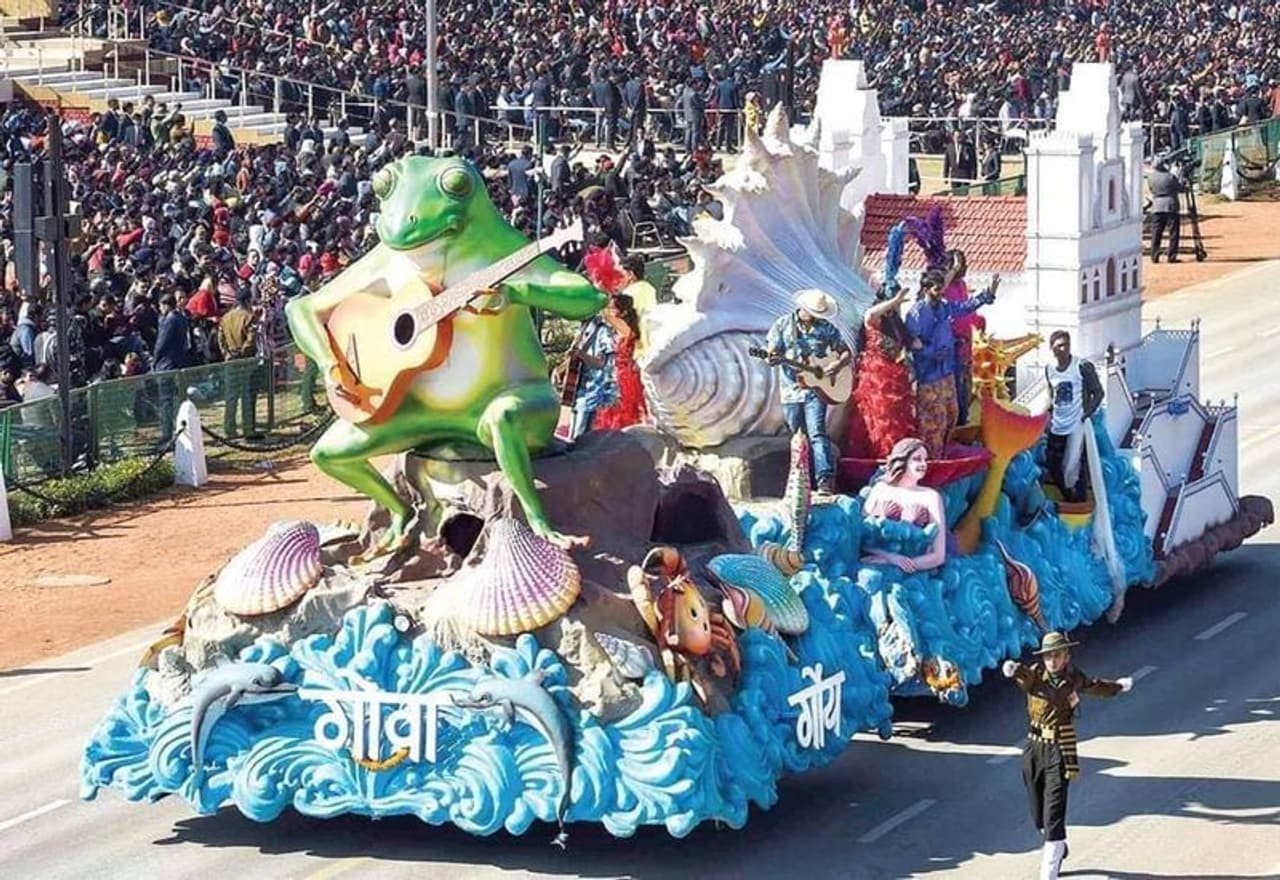 नई दिल्ली. 71वें गणतंत्र दिवस पर दिल्ली के राजपथ पर विभिन्न राज्यों और मंत्रालयों की 22 झांकियों के जरिए देशवासियों को अलग-अलग संदेश दिए गए। इन मनमोहक झांकियों ने सबका ध्यान अपनी ओर से आकर्षित किया। वहीं, गोवा की झांकी पर सबका ध्यान गया। इसमें गिटार बजाता हुआ मेढक दिख रहा था।