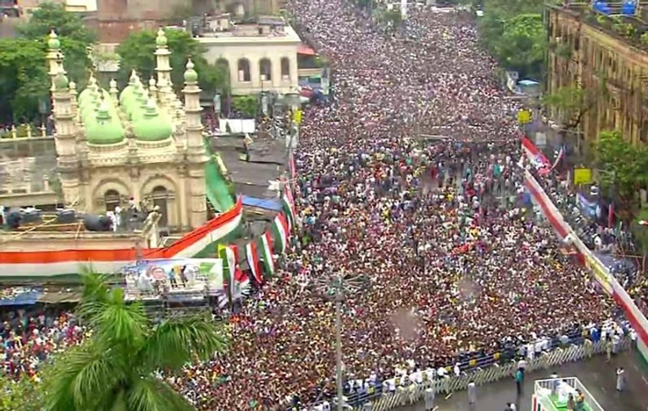कोलकाता। पश्चिम बंगाल की मुख्यमंत्री ममता बनर्जी ने गुरुवार को कोलकाता में अपनी पार्टी टीएमसी की शहीद दिवस रैली को संबोधित किया। रैली में हजारों की संख्या में टीएमसी के कार्यकर्ता शामिल हुए। सड़क लोगों की भीड़ से इस कदर पट गई मानो जन सैलाब उमड़ पड़ा हो। रैली को संबोधित करते हुए ममता बनर्जी ने कहा कि बीजेपी के पास ईडी और सीबीआई है। हमारे पास उनसे लड़ने की ताकत है। देखें रैली की तस्वीरें...