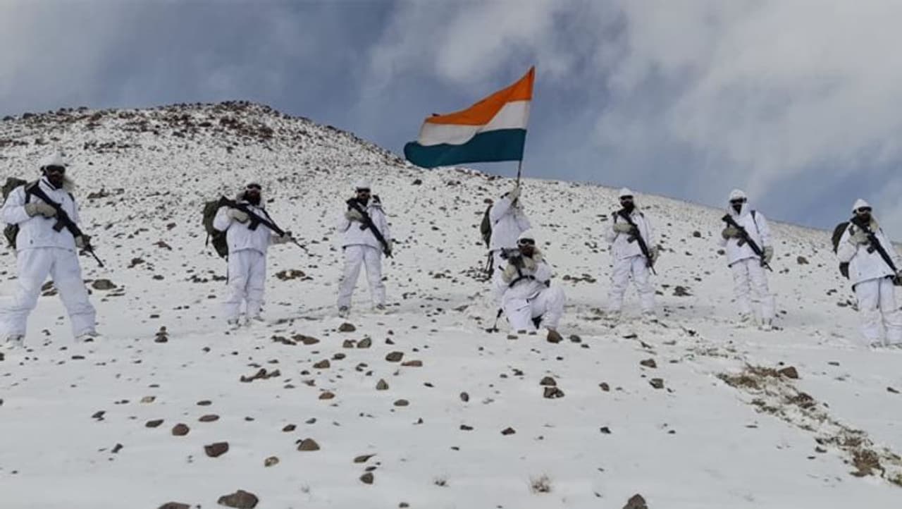 तस्वीर-भारत-तिब्बत सीमा पुलिस (ITBP) के जवानों ने लद्दाख में -40 डिग्री सेल्सियस तापमान में 15,000 फीट की ऊंचाई पर #RepublicDay मनाया।