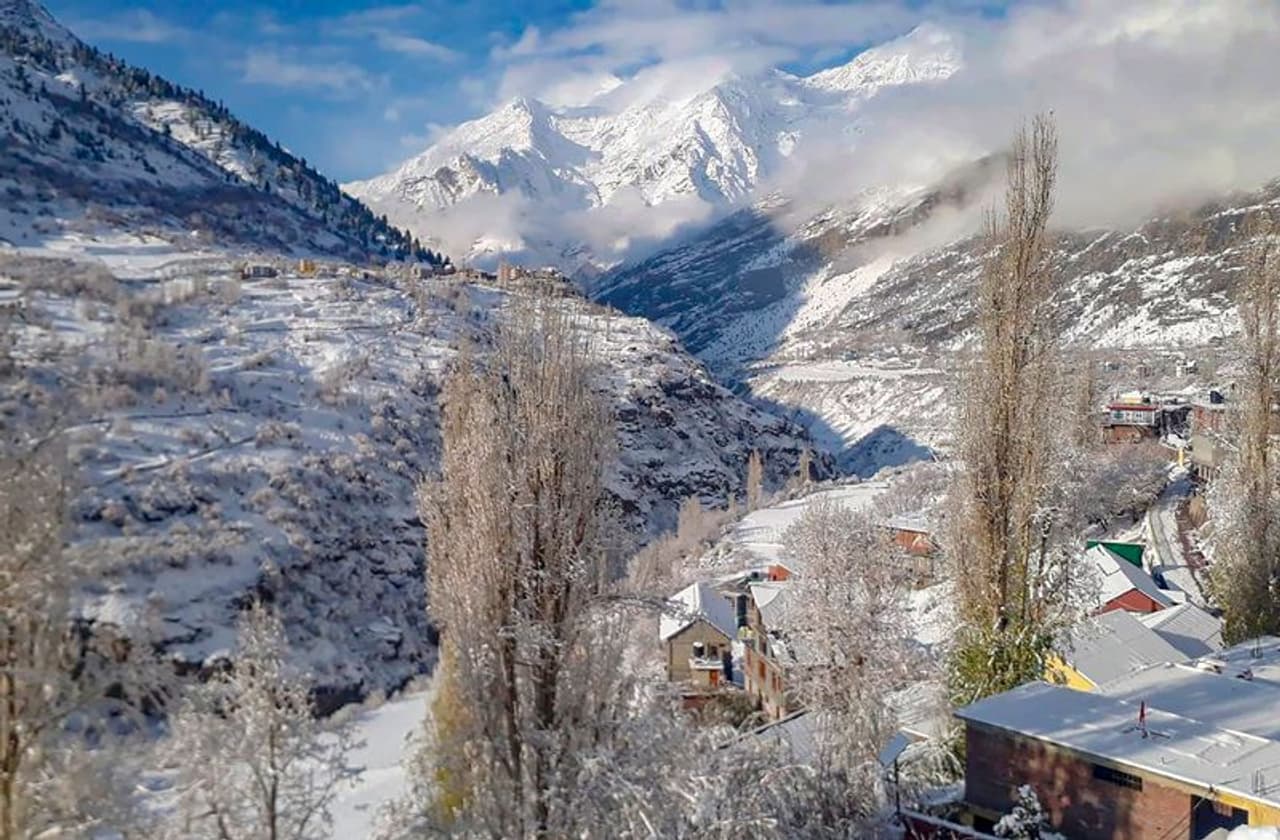 लाहौल स्पीति: हिमपात के एक ताजा दौर के बाद बर्फ से ढकी हिमालय पर्वत श्रृंखलाओं का दृश्य, लाहौल और स्पीति जिले के केलांग में 10 नवंबर को यूं था नजारा।