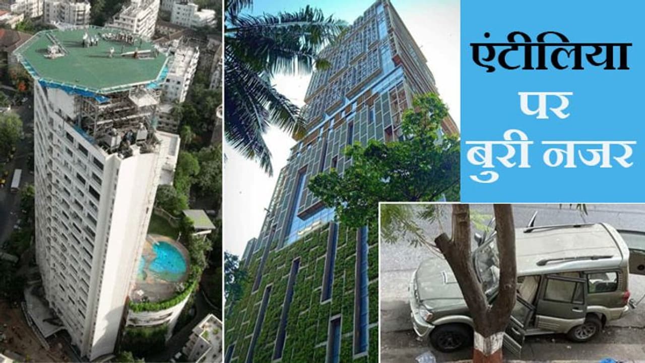 दुनिया के टॉप-10 अमीरों में शुमार रिलायंस इंडस्ट्रीज के मालिक मुकेश अंबानी का यह 27 मंजिला घर 'एंटीलिया' एक संदिग्ध कार के मिलने से फिर से सुर्खियों में है। आसमां छूता एंटीलिया अंबानी की ऊंची उड़ान का गवाह है। इसे दुनिया का दूसरा सबसे महंगा घर माना जाता है। इसमें स्विमिंग पूल, सिनेमा हॉल से लेकिर वो सभी लग्जरी सुख-सुविधाएं मौजूद हैं, जिन्हें देख पाना भी आम इंसान के लिए किसी ख्वाब जैसा है। इस घर की कीमत 11000 करोड़ रुपए आंकी जाती है। मुंबई के साउथ में अल्टमाउंट रोड पर स्थित एंटीलिया 4,00,000 स्क्वायर फीट में बना है। आइए जानते हैं इसके बारे में...