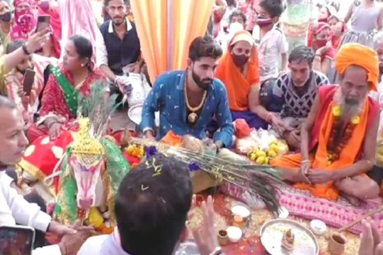 बछड़ा और बछिया की शादी की तस्वीरें सोशल मीडिया पर खूब वायरल हो रही हैं। बता दें कि लाडवी गांव की एक गौशाला में हुई, जहां गौशाला के संचालक संत की वधू के रूप में बछिया है जबकि वर के रूप में जयंती भाई का बछड़ा है।