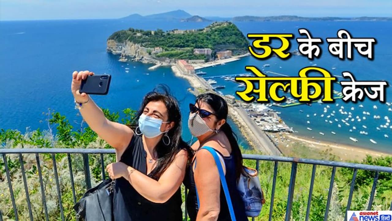 यह तस्वीर इटली की है। सेल्फी के लिए लोगों की दीवानगी कम नहीं हुई।
