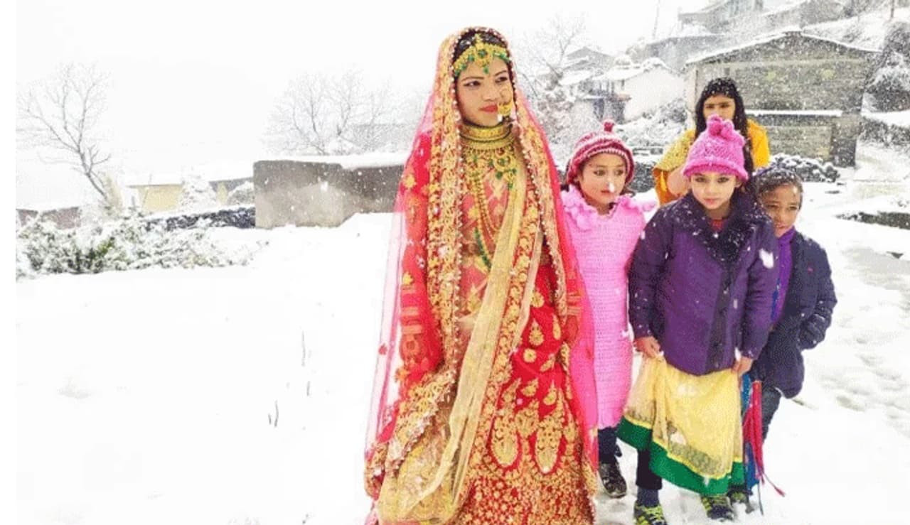 बर्फबारी के बीच ही दूल्हा राजेंद्र और दुल्हन शोभा ने सात फेरे लिए। शनिवार को राजेंद्र दुल्हन लेकर वापस घर पहुंचे।