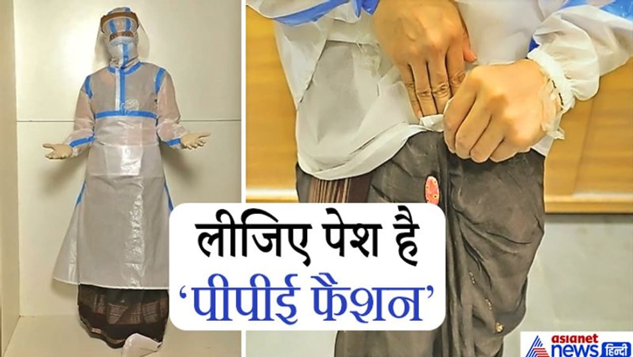 सूरत, गुजरात. कोरोना संक्रमण को रोकने और बीमार लोगों का इलाज करने वाले फ्रंट लाइन वॉरियर्स यानी की डॉक्टरों के लिए यहां एक अनूठा और फैशन के अनुकूल पर्सनल प्रोटेक्टिव इक्विपमेंट(पीपीई) किट डिजाइन किया गया है। इसे साड़ी या सलवार सूट किसी पर भी पहना जा सकता है। यह दिखने में भी स्टाइलिश है और आसानी से पहना भी जा सकता है। इसे दुनिया का पहला ऐसा पीपीई किट कहा जा रहा है, जिसमें तमाम खूबियां हैं। इसे नारी कवच कोविड-19 नाम दिया गया है। इसे डिजाइन किया है सूरत के जाने-माने डिजाइनर सौरव मंडल ने। ये फैशन डिजाइन विकास केंद्र फैशननोवा से जुड़े हैं। उनके मुताबिक यह आत्मनिर्भर भारत अभियान का हिस्सा है। वे बताते हैं कि इस किट को मेडिकल लैब सिट्रा ने मंजूरी दे दी है। जानें इसकी खूबियां...