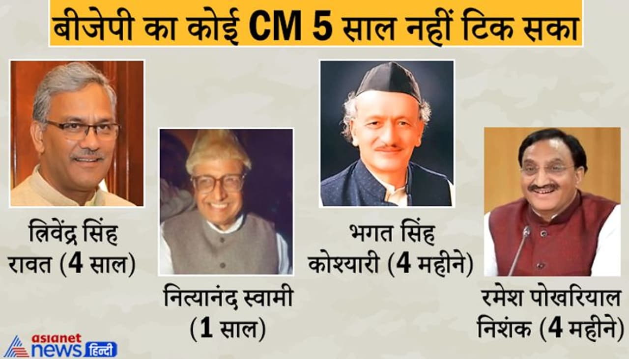 2000 में राज्य के गठन के बाद से कांग्रेस के नारायण दत्त तिवारी के अलावा कोई भी मुख्यमंत्री अपना कार्यकाल पूरा नहीं कर पाया है। राज्य में भाजपा का तीसरी बार मुख्यमंत्री बना है। लेकिन एक भी मुख्यमंत्री पांच साल तक कुर्सी पर नहीं रहा।