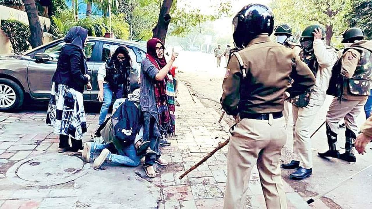 आईएएनएस की एक ट्वीट मुताबिक, संशोधित नागरिकता कानून के खिलाफ विरोध प्रदर्शन कर रहे छात्रों में पुलिस के लाठीचार्ज के बाद तस्वीर में हिजाब में लड़कियों का समूह नजर आ रहा था।