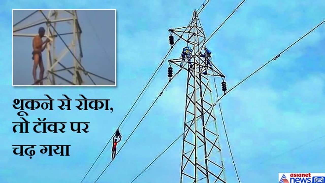 शॉकिंग ड्रामा: थूकने से नहीं भरा मन, तो बंदरों की तरह उछलते हुए 50 फीट ऊंचे बिजली के तारों पर जा चढ़ा