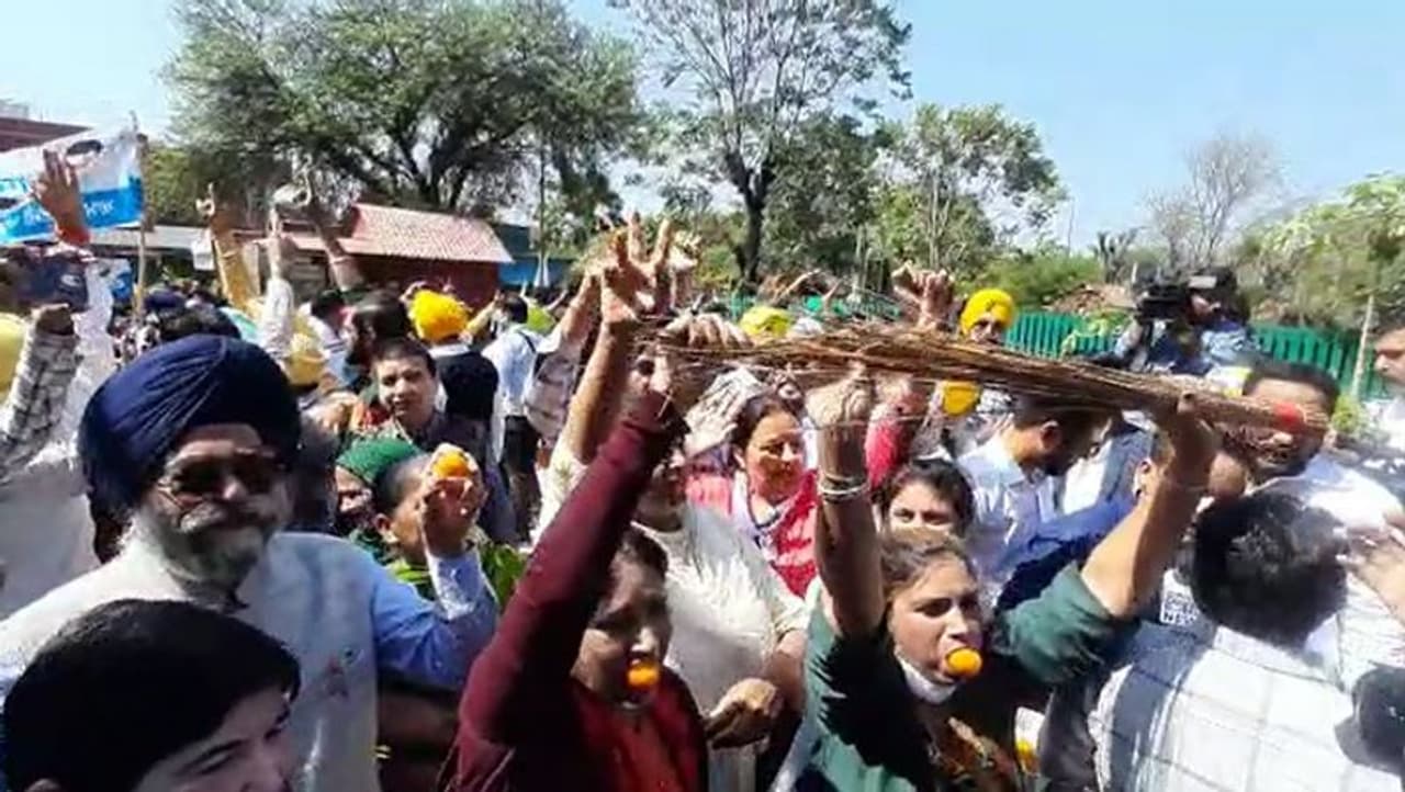 - Punjab Chunav Result 2022: आप कार्यकर्ताओं ने मनाया जश्न, एक-दूसरे को खिलाए लड्डू, झाड़ू के साथ किया डांस
