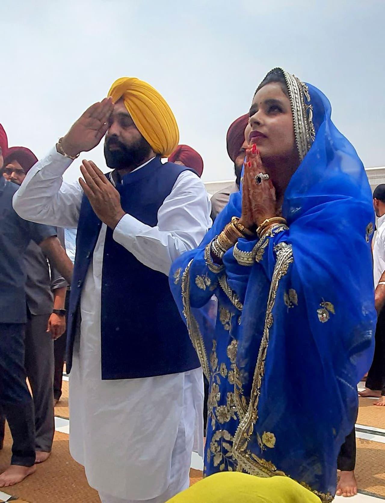 शादी के बाद पहली बार यूं नजर आईं भगवंत मान की नई-नवेली पत्नी डॉ. गुरुप्रीत कौर, दोनों पहुंचे गोल्डन टेंपल-फोटो