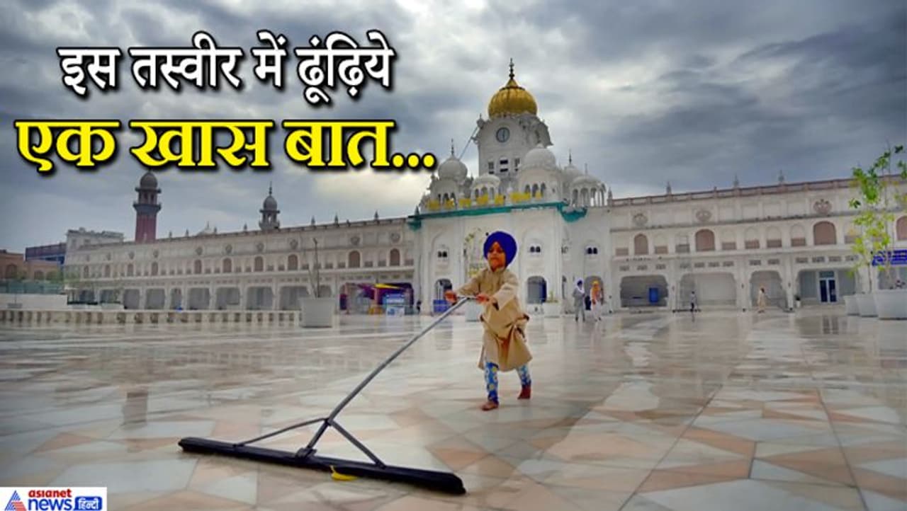 अमृतसर स्थित स्वर्ण मंदिर में साफ-सफाई के जरिये स्वच्छता का संदेश देता एक बच्चा।
