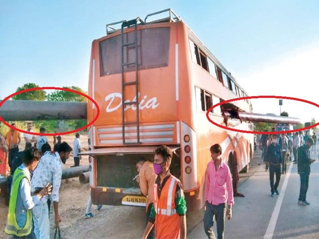 राजस्थान। लापरवाही के कारण दो यात्रियों की मौत हो गई। जबकि 16 लोग घायल हो गए। यह हादसा पाली जिले में जयपुर-अहमदाबाद एनएच-162 पर सांडेराव गांव के निकट मंगलवार शाम को हुआ। बताया जा रहा है कि संभवत तेज गति से आ रही बस के चालक और परिचालक ने हाइड्रोलिक मशीन से लटक रहे 80 फीट लंबे लोहे के पाइप पर ध्यान ही नहीं दिया और हादसा हो गया।