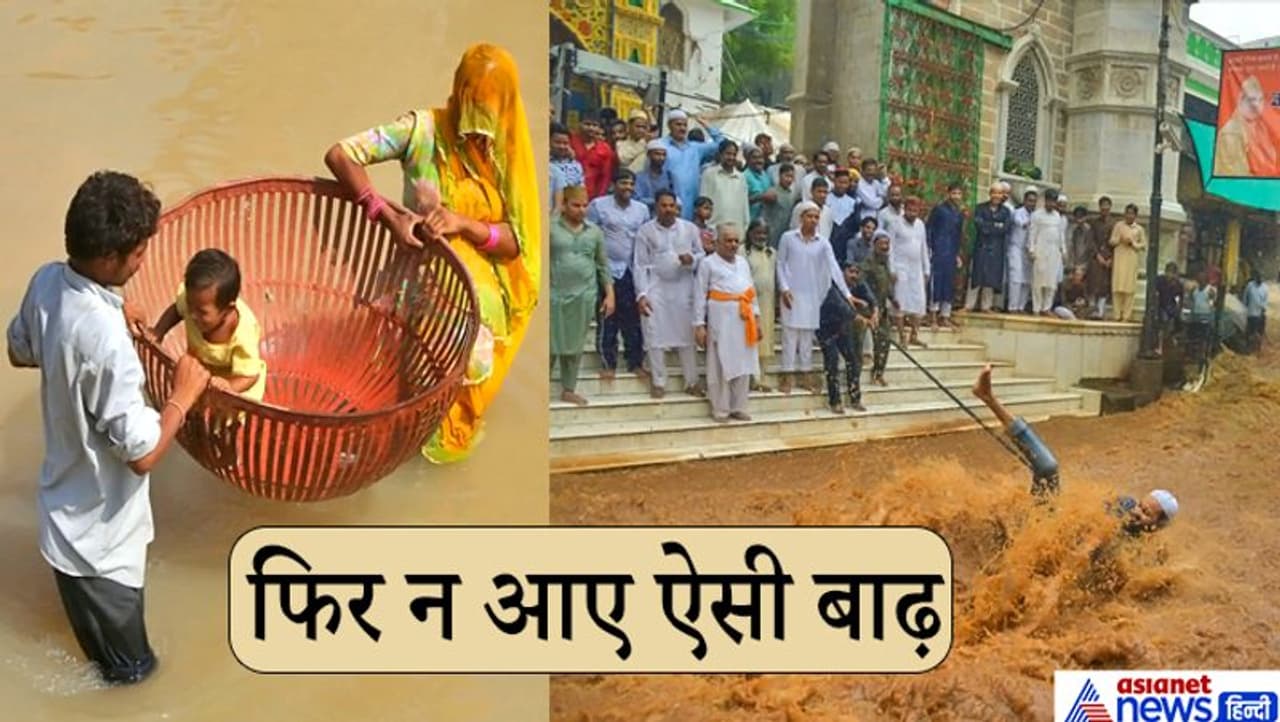 पहली तस्वीर राजस्थान के बाड़मेर जिले की है। यह तस्वीर 2006 की है। बाढ़ ने कई घरों को तबाह कर दिया था। दूसरी तस्वीर अजमेर की है। दरगाह के पास एक शख्स बाढ़ में बहने लगा था। उसे किसी तरह बचाया जा सका था।
