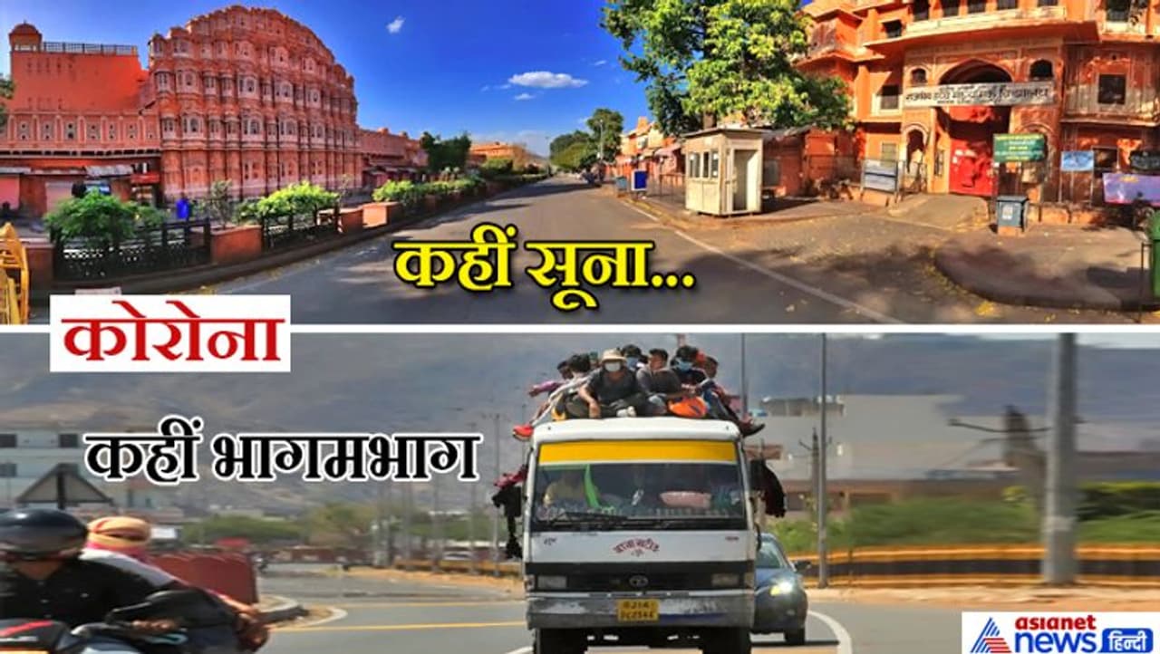 पहली तस्वीर जयपुर के हवा महल की है। यहां लॉक डाउन के बाद ऐसा सन्नाटा पसरा हुआ है। दूसरी तस्वीर राजस्थान के एक अन्य इलाके की है। कुछ दिनों पहले तक यहां दिहाड़ी मजदूर ऐसे घरों की ओर लौट रहे थे।