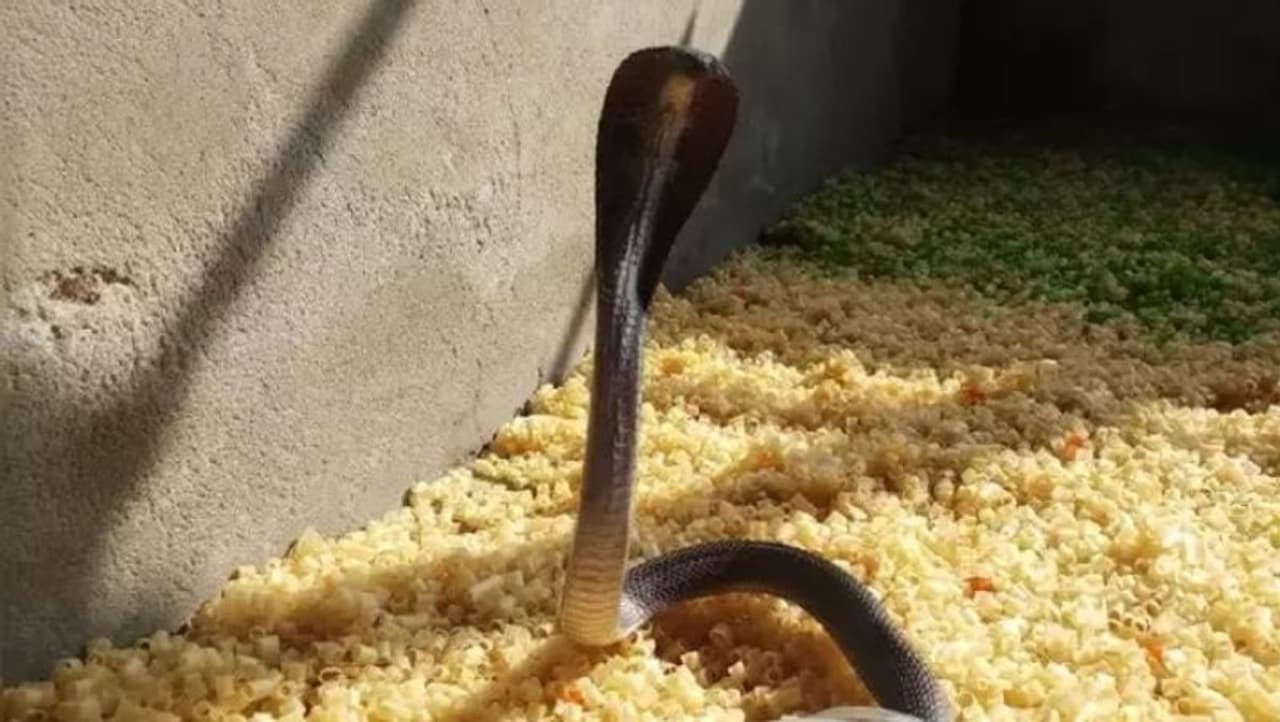 कुरकुरे खाने पहुंचा ब्लैक कोबरा, डरने की बजाए लोग हुए खुश और बनाने लगे वीडियो