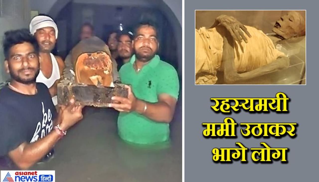 जयपुर, राजस्थान. जयपुर में 14 अगस्त को हुई रिकॉर्ड बारिश के बाद एक चौंकाने वाली घटना सामने आई है। यहां के अल्बर्ट हॉल में रखी 2400 साल पुरानी ममी को डूबने से बचाने हॉल के कर्मचारी उसे कंधे पर उठाकर बाहर की ओर दौड़ पड़े। बता दें कि यह ममी मिस्त्र के प्राचीन नगर पैनोपोलिस में मिली थी। इसे 137 साल पहले भारत लाकर अल्बर्ट हॉल के म्यूजियम में बेसमेंट में सुरक्षित रखा गया था। भारी बारिश के चलते बेसमेंट में 4 फीट पानी भर चुका था। धीरे-धीरे पानी ममी ओर बढ़ रहा था। अगर चंद मिनट की भी देरी हो जाती..तो यह ममी बाढ़ में डूब जाती। यानी एक इतिहास पानी में डूब जाता। इसे यहां लाने के बाद पहली बार शोकेस से निकाला गया। यह भी अपने आप में एक चौंकाने वाली घटना है। जब कर्मचारी इस ममी को कंधे पर उठाकर हॉल से बाहर निकल रहे थे, तब वे कमर-कमर तक पानी में डूबे हुए थे। यह दृश्य हॉलीवुड की फिल्म 'द ममी रिटर्न्स' जैसा डरावना मंजर पैदा कर रखा था। जानिए इस घटना और ममी से जुड़ीं कुछ अन्य बातें...