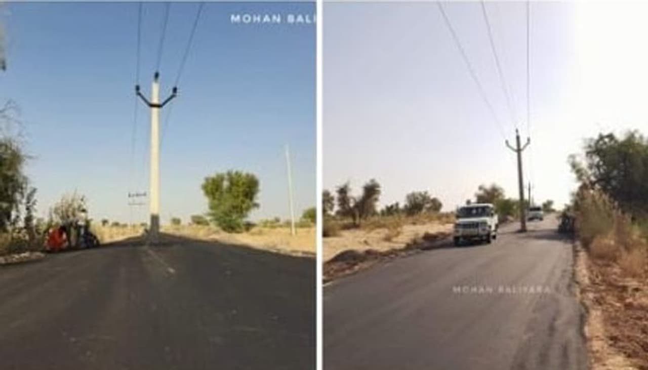 इस सड़क की तस्वीर को पोस्ट कर एक यूजर ने लिखा- राजस्थान बाड़मेर सड़क निर्माण, भविष्य की प्लानिंग है, भविष्य में इससे इलेक्ट्रिक वाहन भी चल सकेंगे। विकास पागल हो गया है।