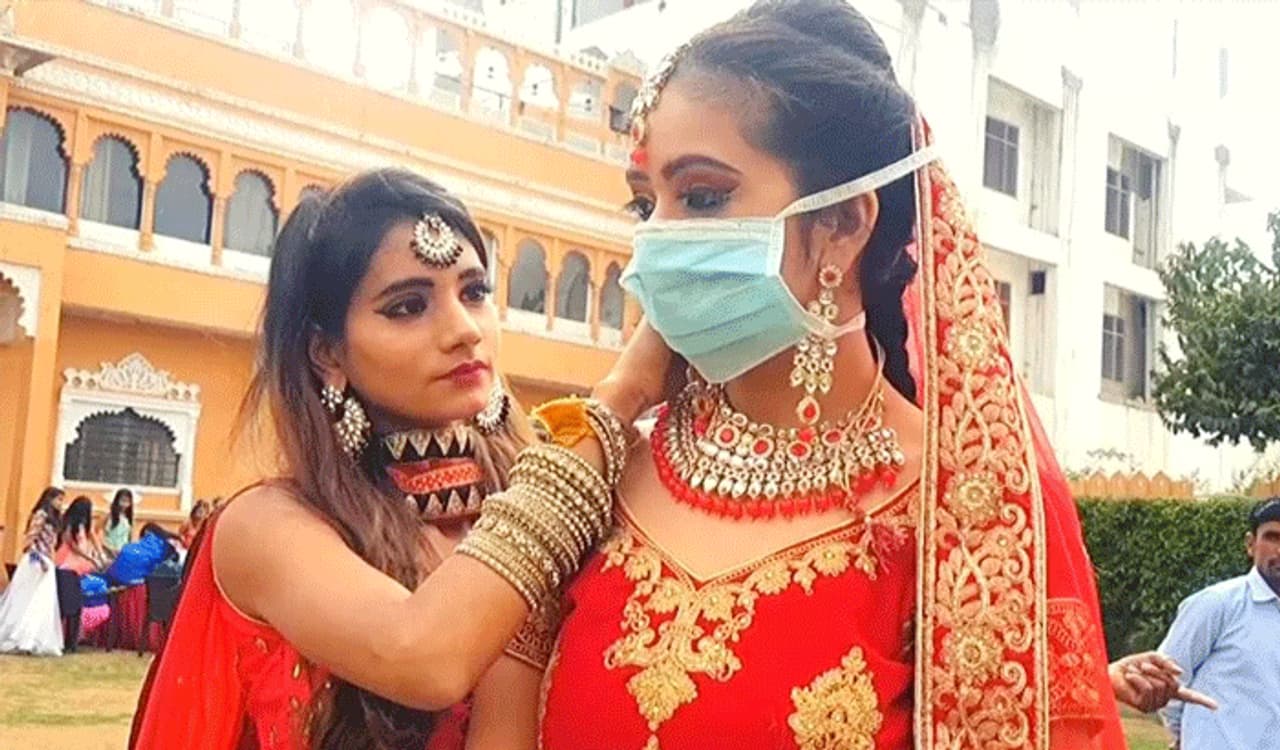 कोरोना का खौफः पहले सज-धजकर हुई तैयार, फिर दुल्हन ने चेहरे पर लगाया मास्क